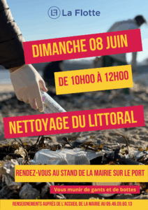 À l’occasion de la Fête du Port, la Mairie de la Flotte organise une nouvelle opération de nettoyage du littoral, afin de sensibiliser les habitants à la protection du patrimoine littoral. Dans une démarche d’action citoyenne, elle souhaite encourager à la préservation et au respect de l’environnement.