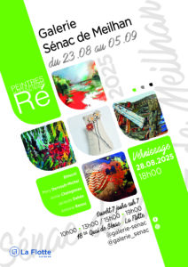 L’association Peintres et sculpteurs de l’Île de Ré organise à la Galerie Sénac de Meilhan une exposition du 23 août au 05 septembre avec :