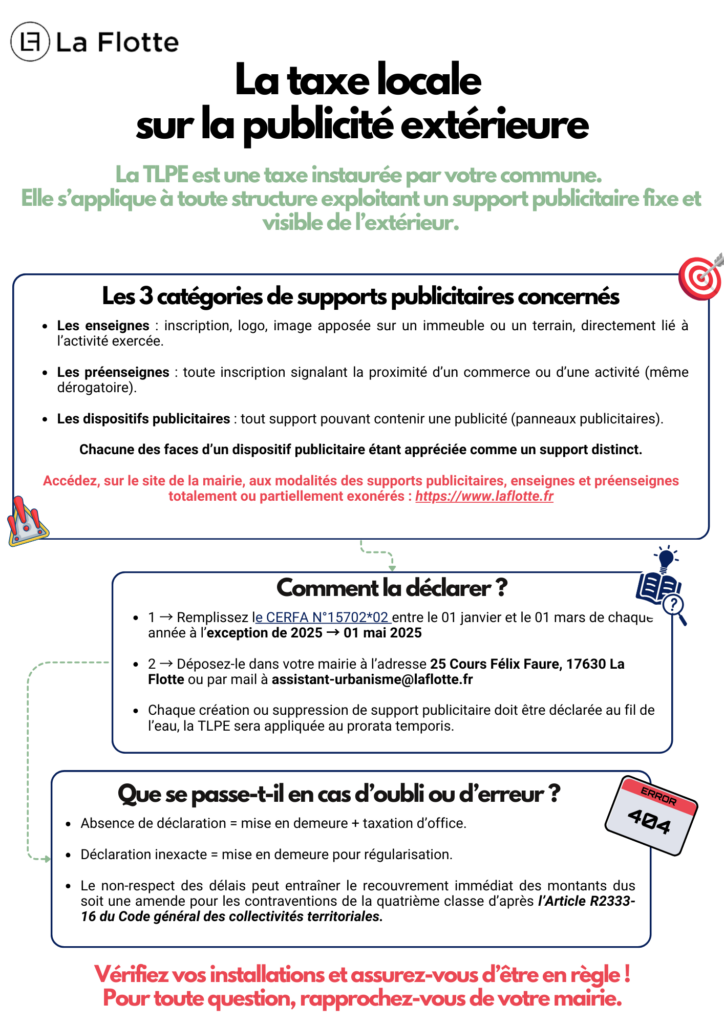 COMMUNIQUÉ DE PRESSE : TAXE LOCALE SUR LA PUBLICITÉ EXTÉRIEURE (TLPE) – COMMUNE DE LA FLOTTE
