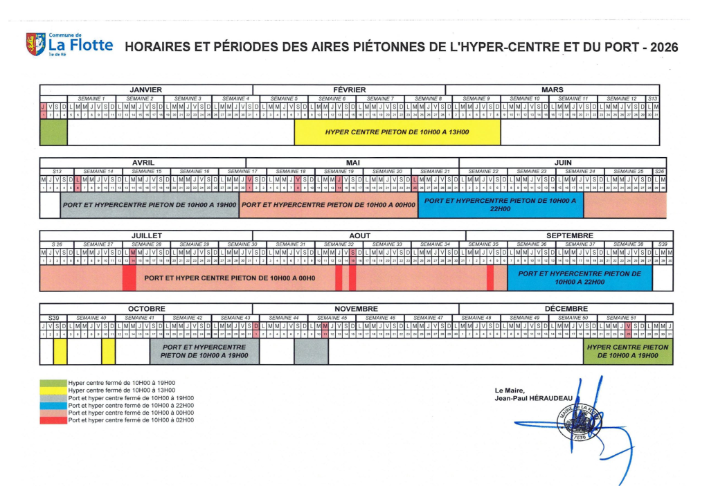 HORAIRES ET PÉRIODES DES AIRES PIÉTONNES DE L’HYPER-CENTRE ET DU PORT 2026