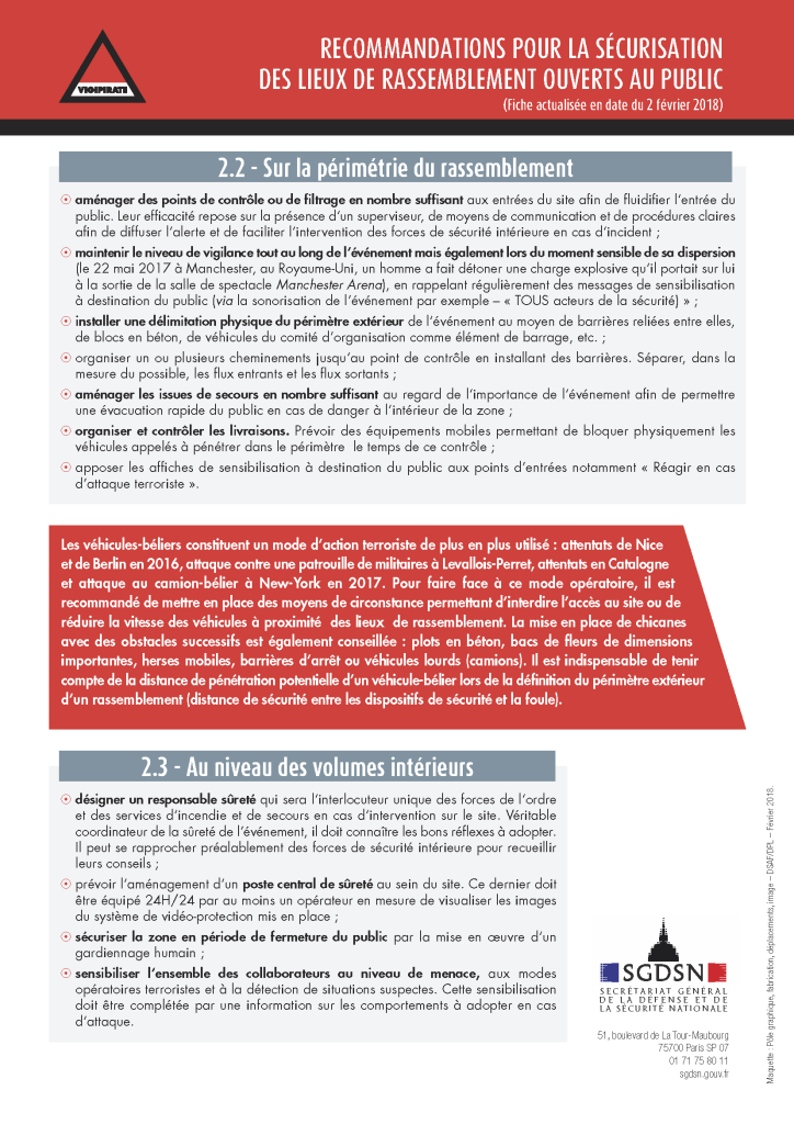 INFORMATION | Recommandations pour la sécurisation des lieux de rassemblement ouverts au public