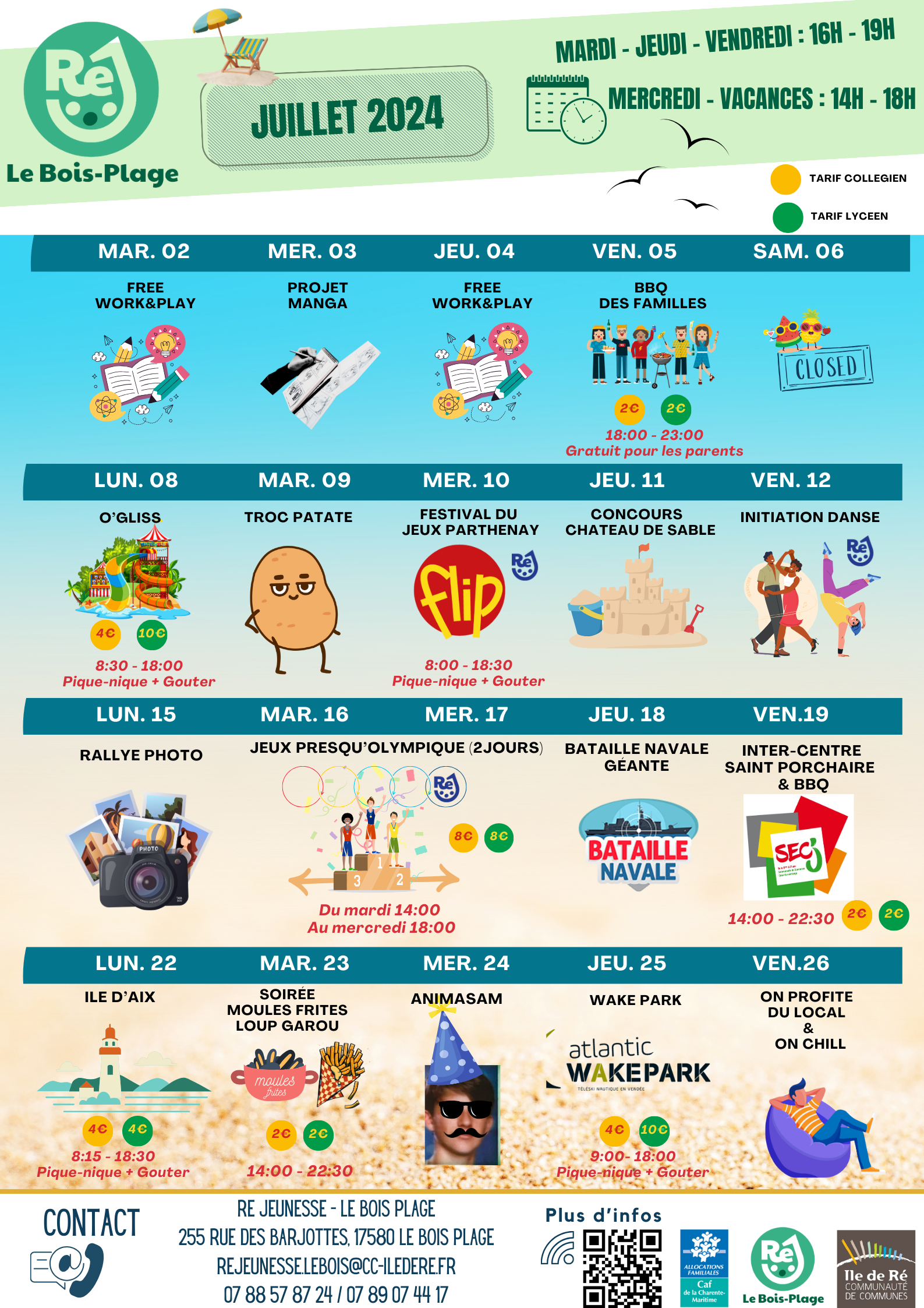 Ré-jeunesse vous accueille, à partir du 02 jusqu’au 31 juillet 2024, les mardis, jeudis et vendredis de 16h à 19h et les mercredis et samedis de 14h à 18h.